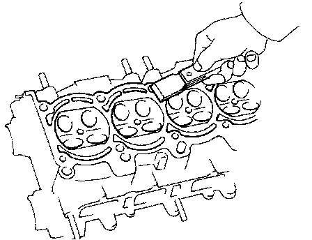 Using a precision straight edge and feeler gauge, measure the surfaces contacting the cylinder block and man for warpage.