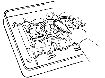 Using a soft brush and solvent, thoroughly clean the cylinder head.