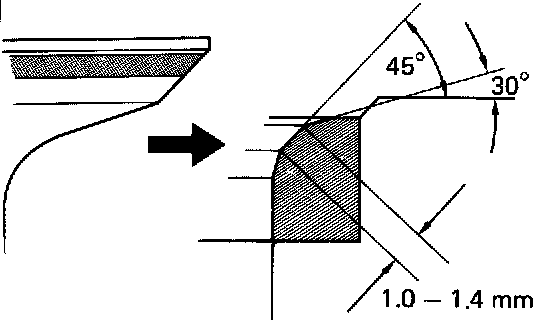 - Check that the seat contact is on the middle of the valve face with the following width: 1.0 - 1.4 mm (0.039 - 0.055 in.) If not, correct the valve seats as follows: