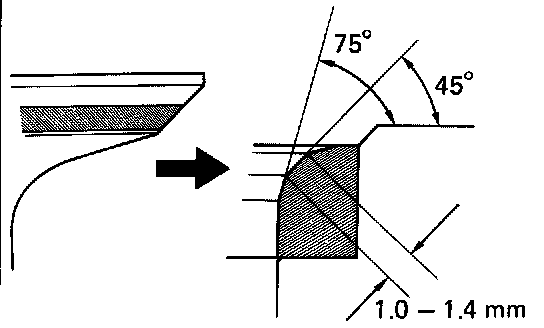 (2) If the seating is too low on the valve face, use 75° and 45° cutters to correct the seat.