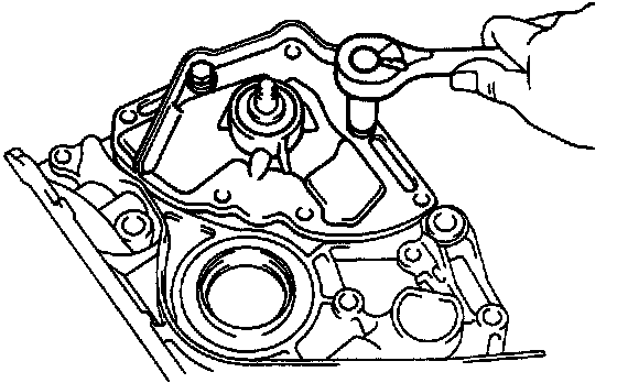 (b) Using a plastic-faced hammer, careful tap off the oil pump.