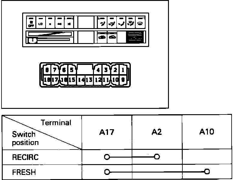 RECIRC/FRESH Control Switch Continuity: