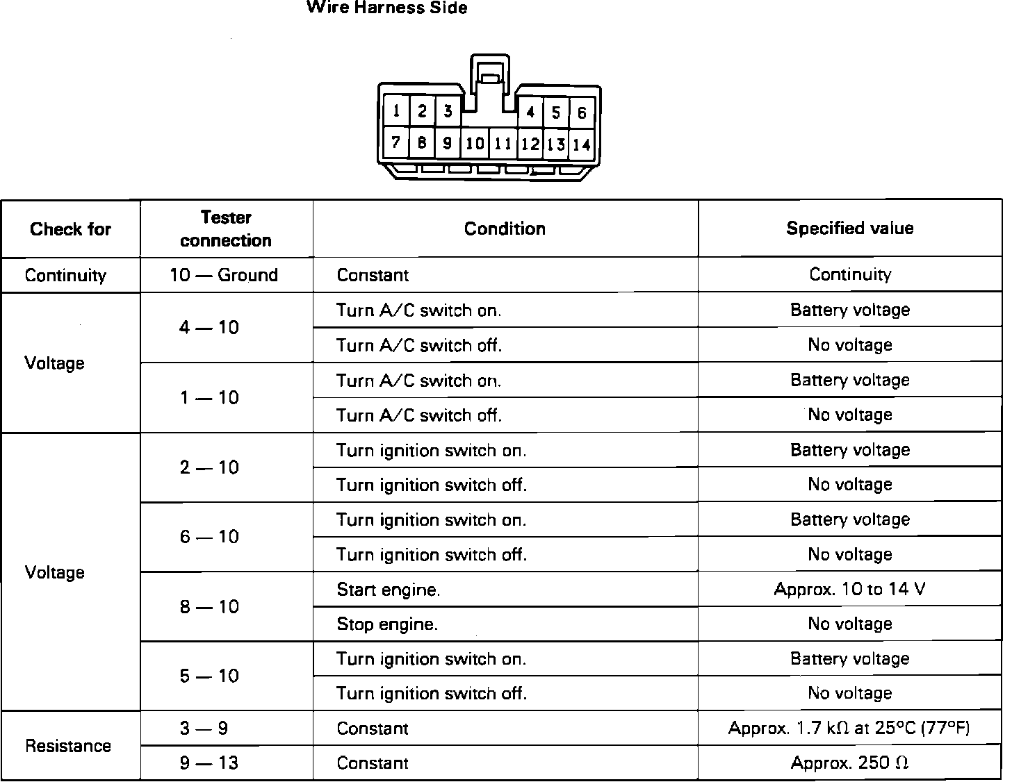 1. Disconnect amplifier and check connector on wire harness side as shown on image chart.