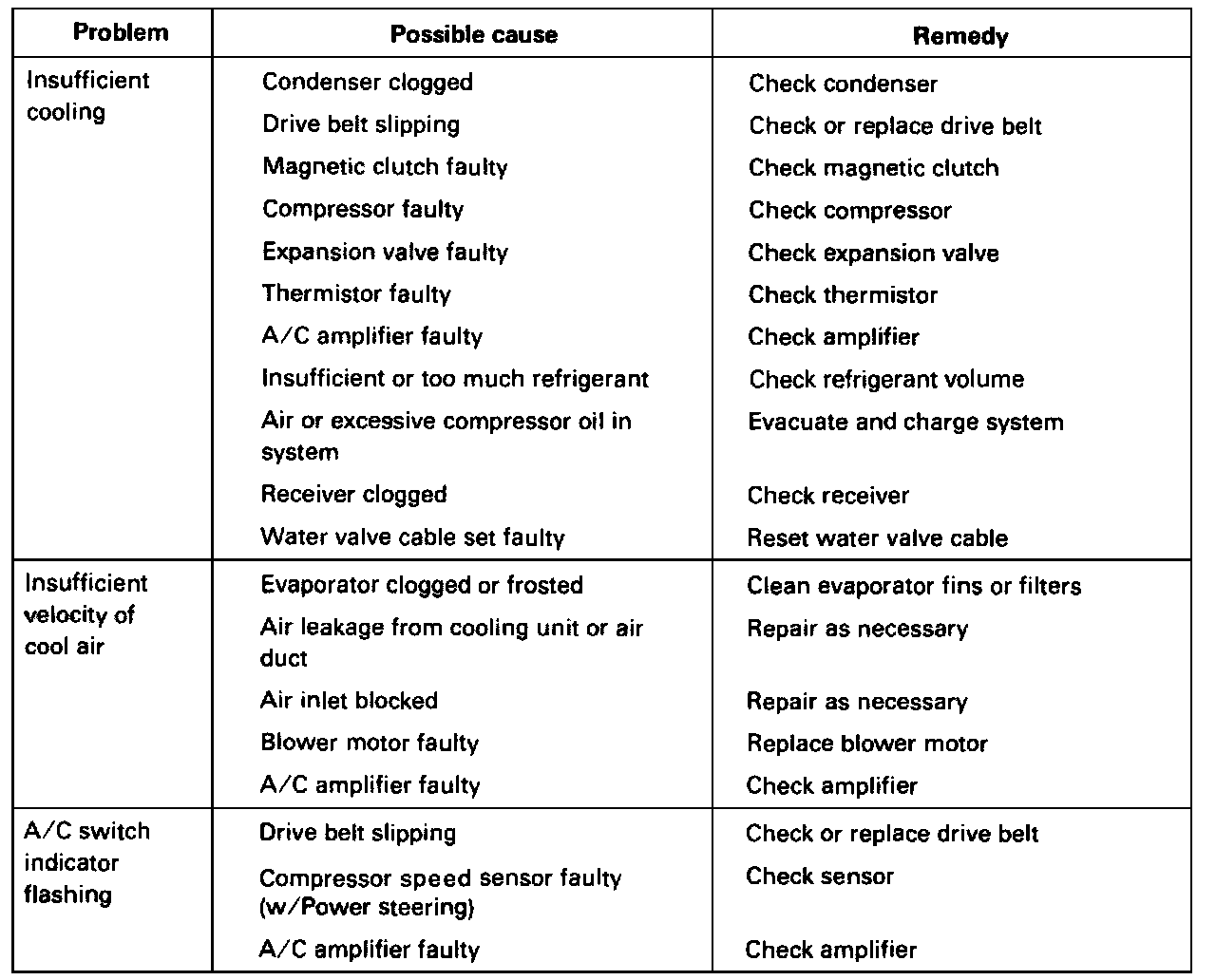 A/C Inoperative - Flashing A/C Light