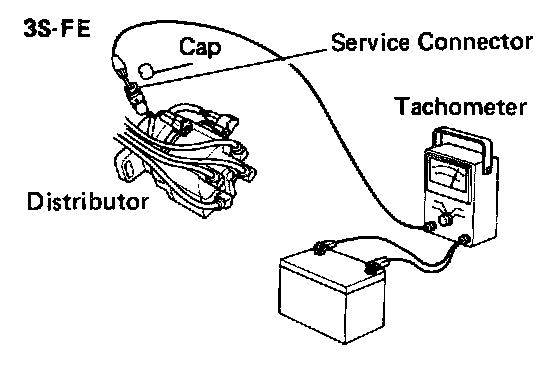b. Connect the test probe of a tachometer to the service connector of the distributor.