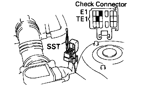 3. Using SST 09843-18020, connect terminals TEl and El of the check connector.