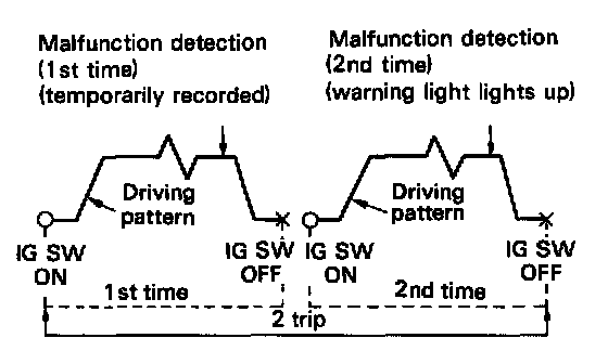 ^ The diagnostic codes 21 (for 2VZ-FE), 25, 26, 27 and 71 are used "2 trip detection logic" is used. With this logic, when a logic malfunction is first detected, the malfunction is temporarily stored in the ECU memory. If the same case is detected again during the second drive test, this second detection causes the "CHECK" Engine Warning Light to light up.