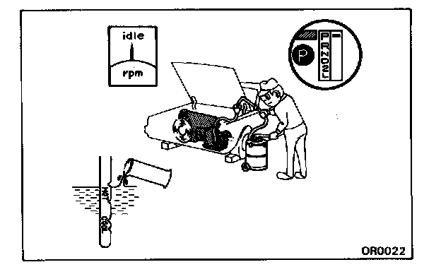 e. With the engine idling, check the fluid level. Add fluid up to the "COOL" level on the dipstick.