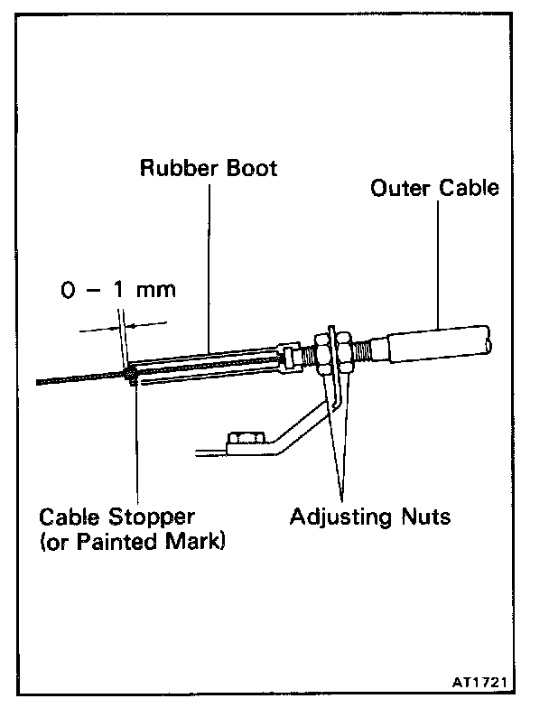 d. Adjust the outer cable so that the distance between the end of the boot and stopper on the cable is the standard.