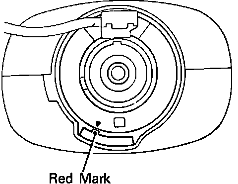 a. If spiral cable was removed, ensure front wheels are straight ahead, the turn spiral cable counterclockwise by hand until becomes harder to turn cable, then rotate cable clockwise three turn to align red mark, Fig. 8.