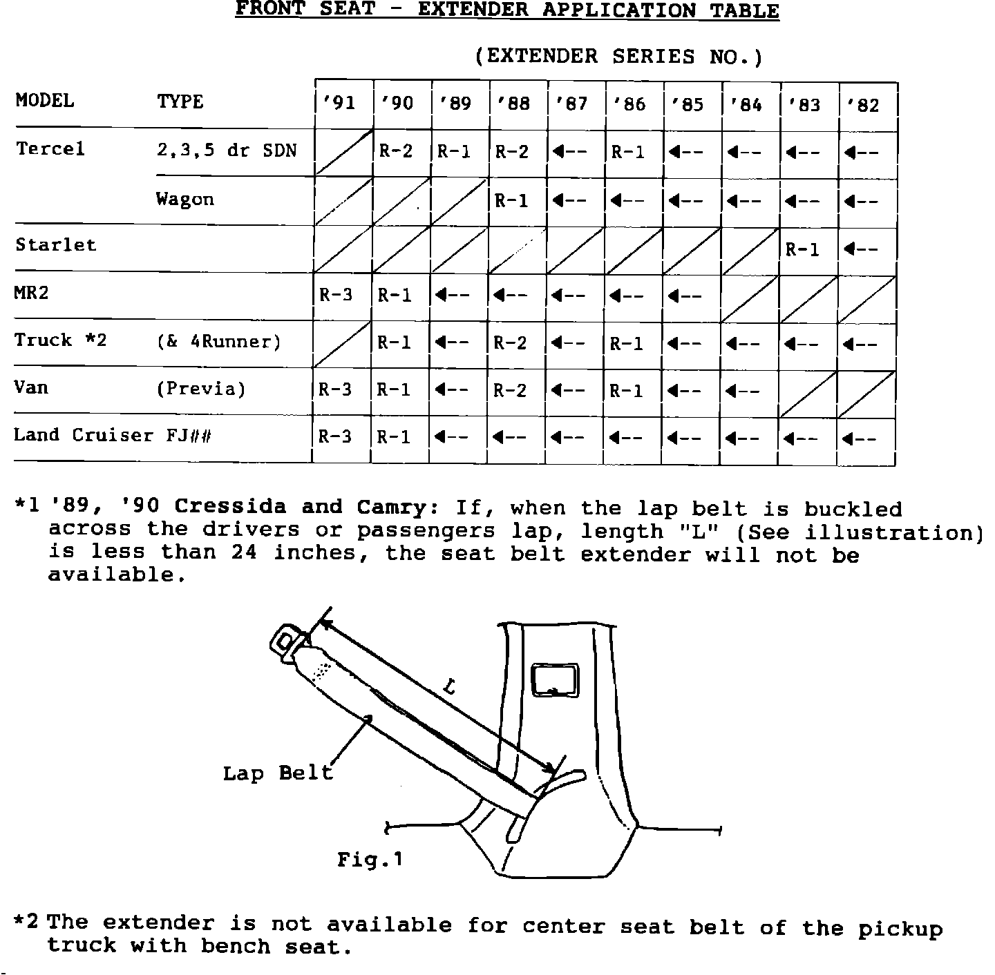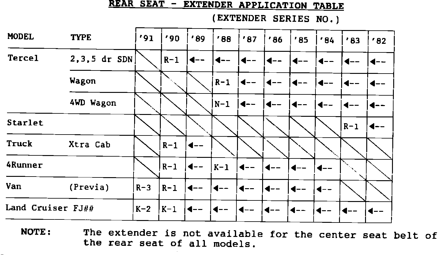 TITLE SEAT BELT EXTENDER (1982 to 1991 Model Years Cont'd.):
