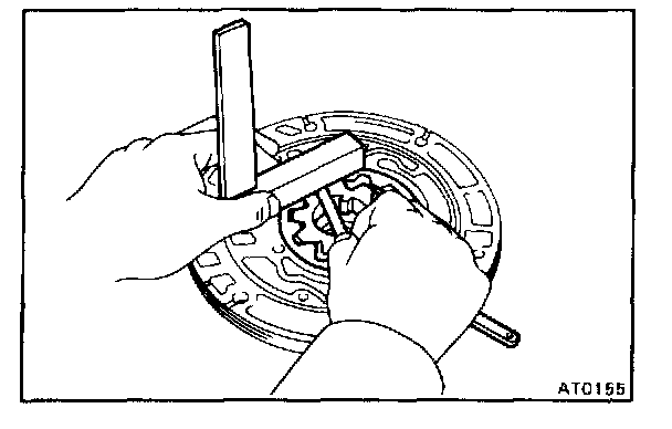 Using a steel straightedge and a feeler gauge, measure the side clearance of both gears.