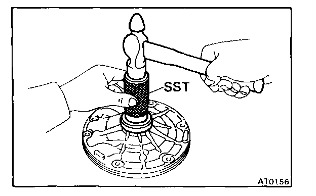 Using SST and a hammer, install a new oil seal. The seal end should be flush with the outer edge of the pump body.
