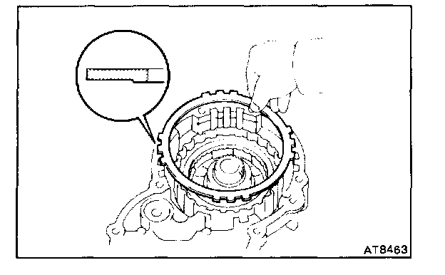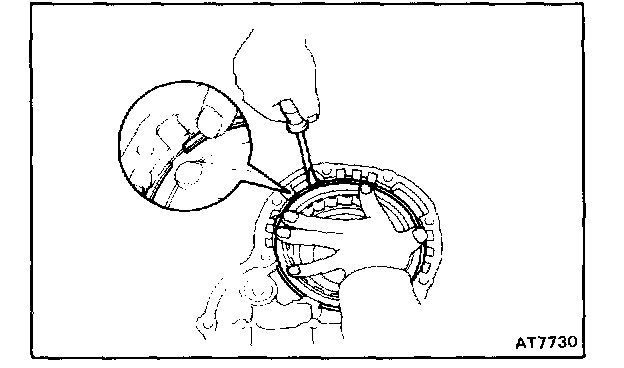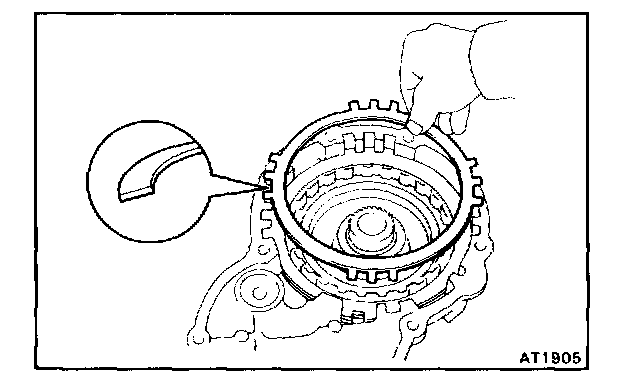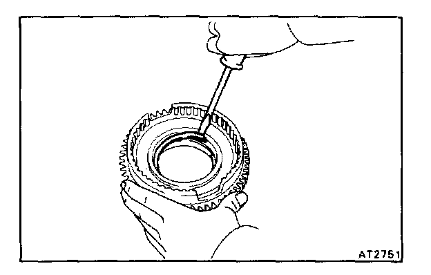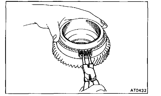 While pushing down the ring gear, squeeze the snap ring end with a needle-nose pliers, and install it into the groove.