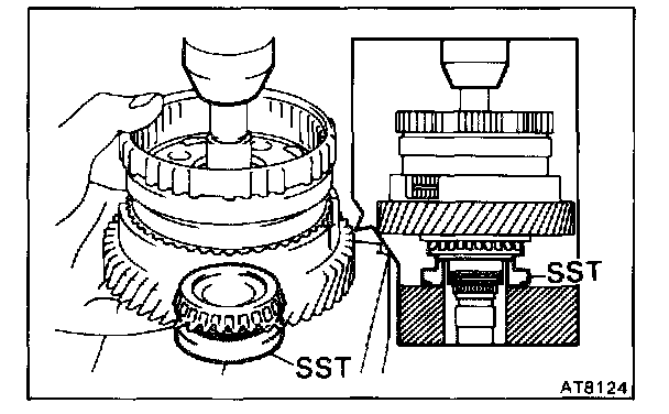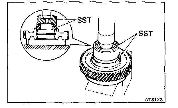 Using SST, press in the two outer races to the gear both side.