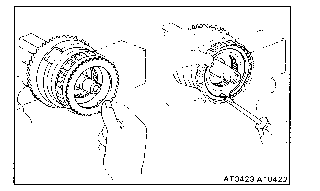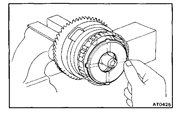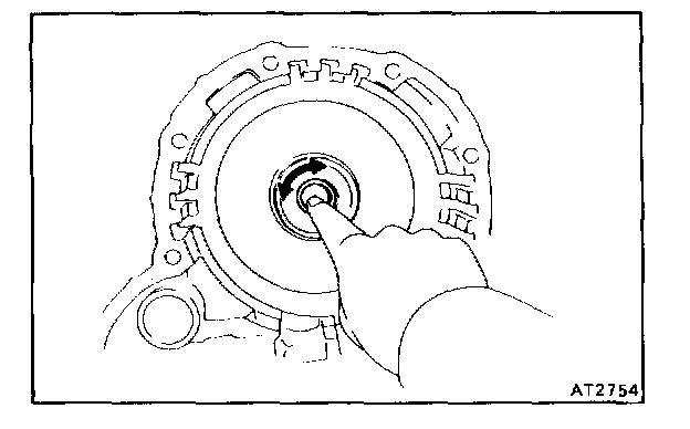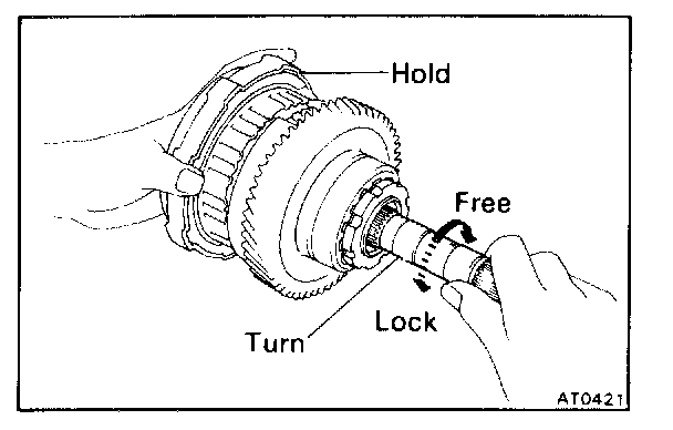b. Hold the overdrive direct clutch and turn the intermediate shaft. The shaft should turn freely clockwise and should lock counterclockwise.