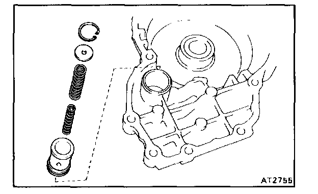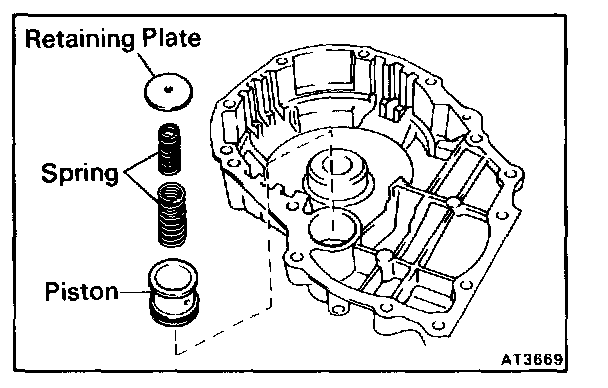 b. Install the accumulator piston, two springs and plate.