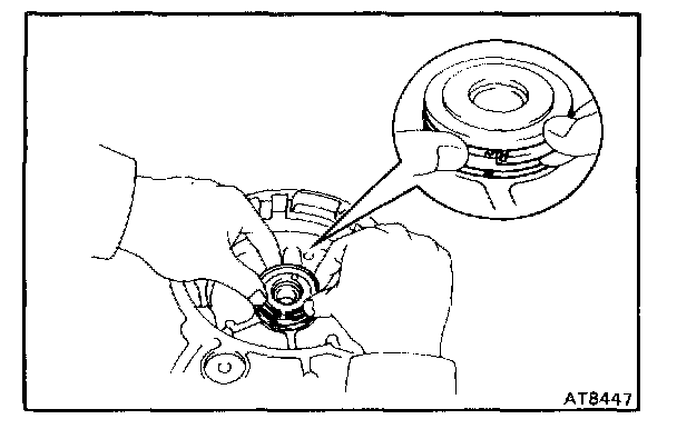 HINT: Press in the bearing until the side surface of the inner race touches the shaft.