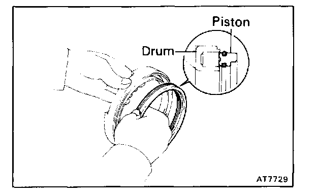 b. Press the piston into the drum, being careful not to damage the O-rings.