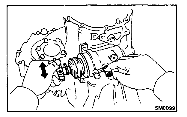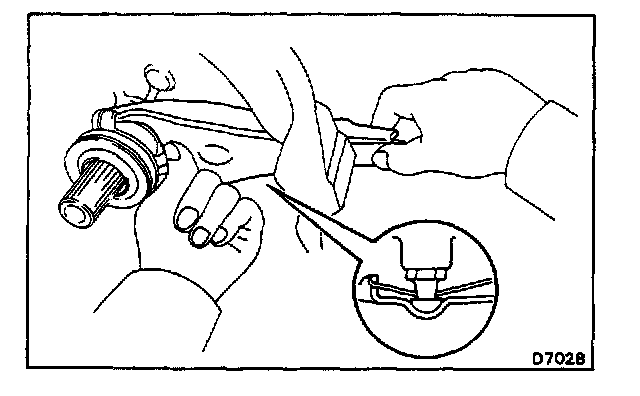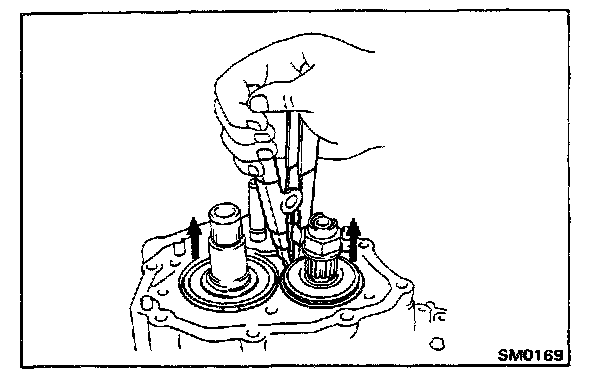 HINT: If it is difficult to install the snap ring, pull up the shafts.