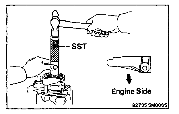 b. Using SST and a hammer, drive in No.3 hub sleeve with shift fork.