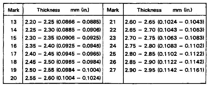 Standard clearance: 0.20 - 0.40 mm (0.0079 - 0.0157 in.)
