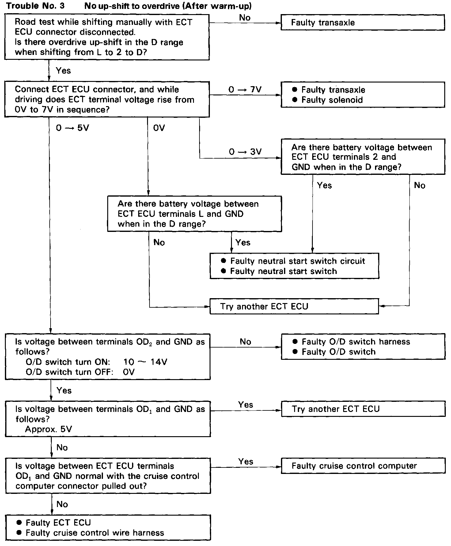 Trouble No.3 No Up-shift To Overdrive (After Warm-up):