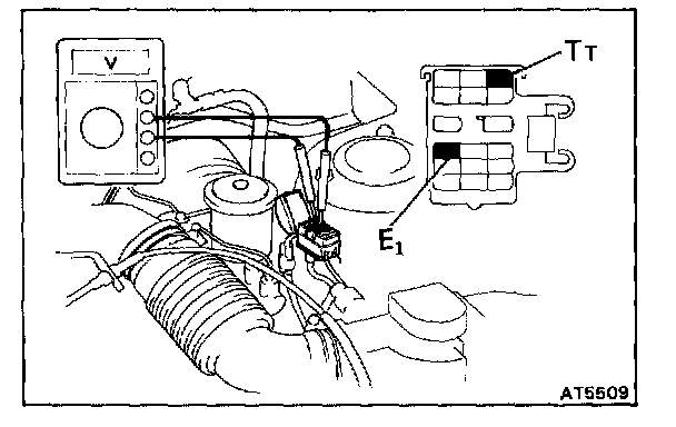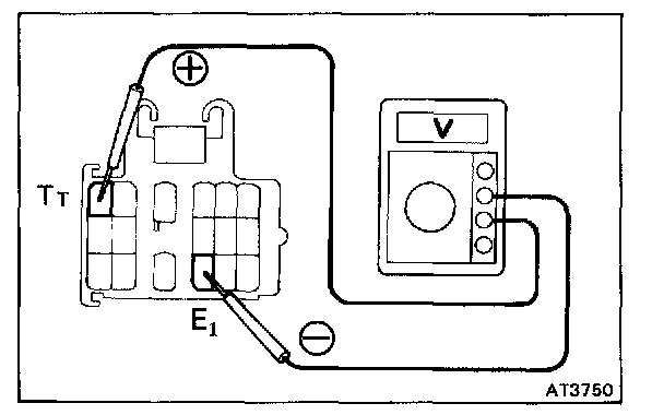 b. Connect a voltmeter to the check connector terminals T(T) and E(1).