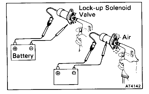 - Applying 5 kg/sq.cm (71 psi, 490 kPa) of compressed air, check that the solenoid valve opens.