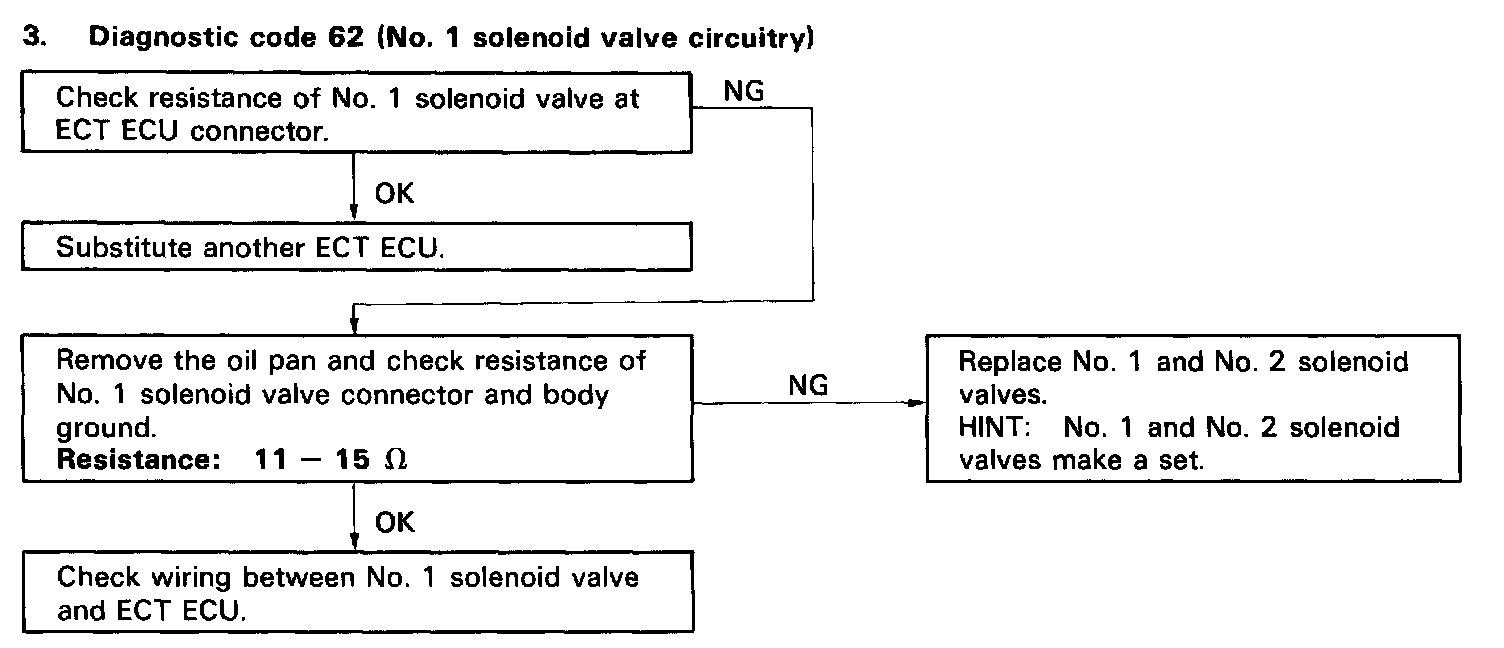 Diagnostic Code 62 (No.1 Solenoid Valve Circuitry):
