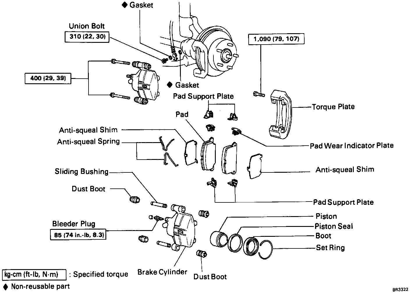 - Remove two Caliper installation bolts from the torque plate.