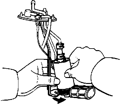 5. Push the lower side of the fuel pump into the fuel pump bracket, ensuring that the fuel screen locks into the bracket securely.