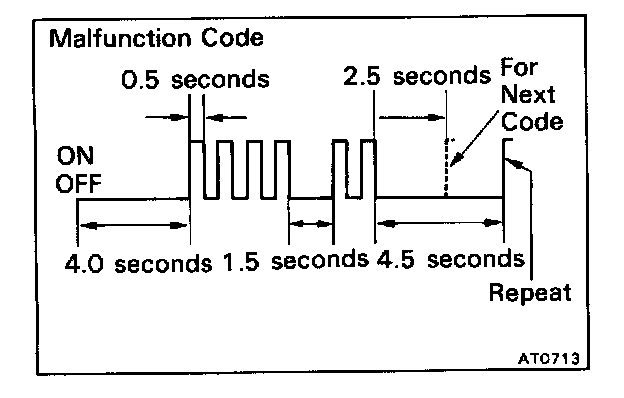 HINT: Warning and diagnostic codes can be read only when the overdrive switch is ON. If OFF, the overdrive OFF light will light continuously and will not blink.