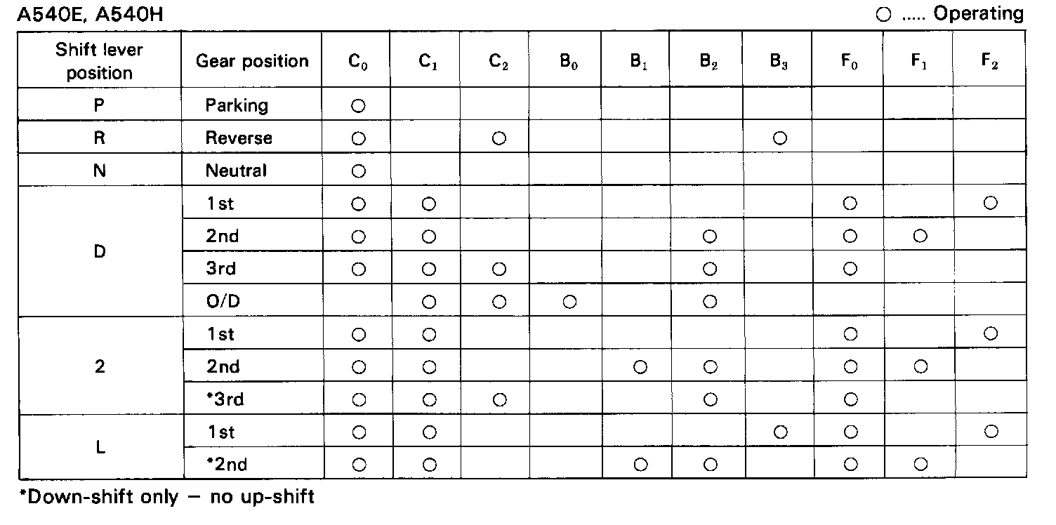 Each clutch and brake operates by hydraulic pressure; gear position is decided according to the throttle opening angle and vehicle speed, and shift change automatically occurs.