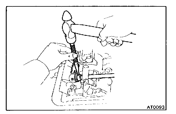 f. Using a pin punch, drive in the roll pin until its surface is flush with the manual valve lever surface.