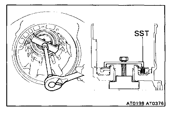 b. Place SST, and compress the return spring evenly by tightening the bolt gradually.