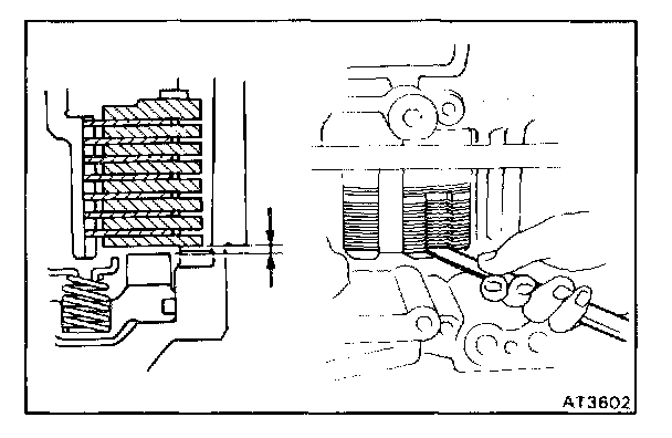 b. Using a filler gauge, check the pack clearance of the first and reverse brake.