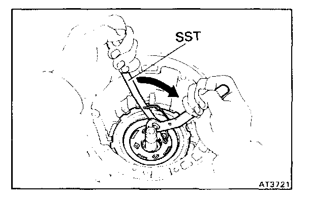 b. Install the one-way clutch while turning the planetary gear clockwise with SST.
