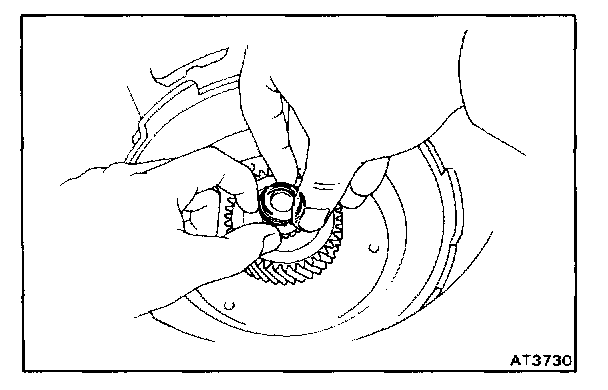 Coat the race with petroleum jelly and install it onto the tip of ring gear.