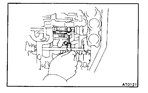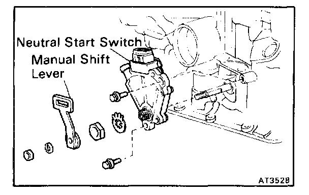 b. Pry off the lock washer and remove the manual valve shaft nut.