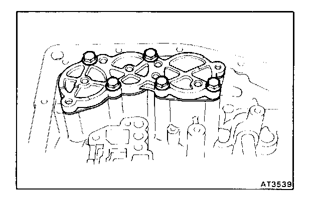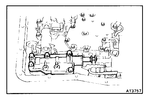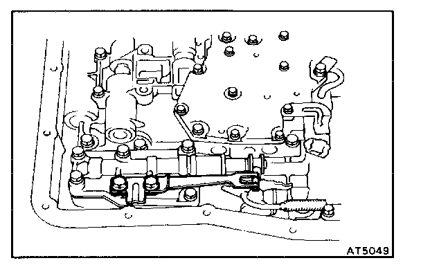 b. Remove the five bolts and manual valve body with the manual valve.