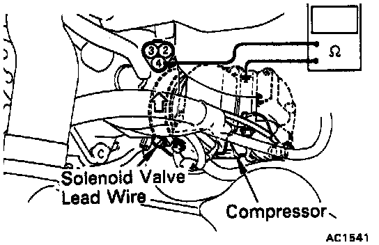 6. Check solenoid valve. Using an ohmmeter, check the continuity. If continuity is not as specified, replace the valve.