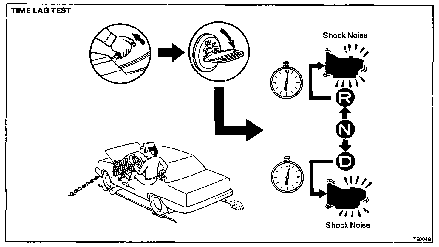 c. Shift the shift lever from N to D position. Using a stop watch, measure the time it takes from shifting the lever until the shock is felt.