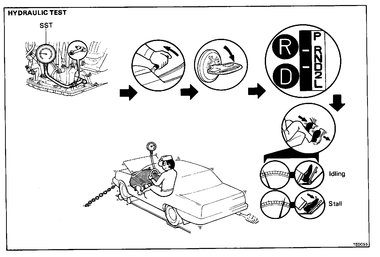 The object of this test is to check the overall performance of the transaxle and engine by measuring the stall speeds in the D and R ranges.