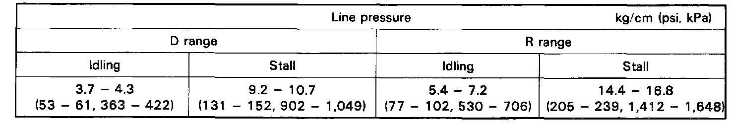 e. Press the accelerator pedal all the way down. Quickly read the highest line pressure when engine speed reaches stall speed.
