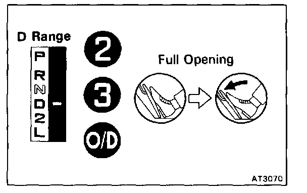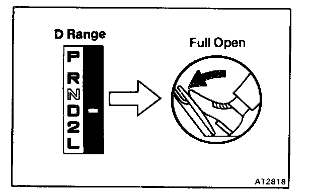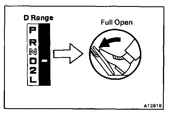Shift into the D range and hold the accelerator pedal constant at the full throttle valve opening position.