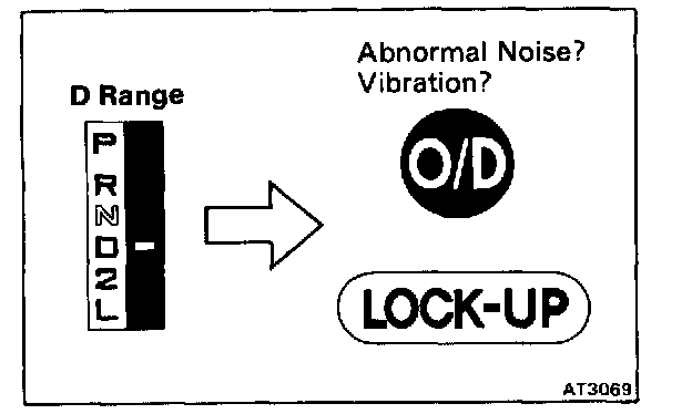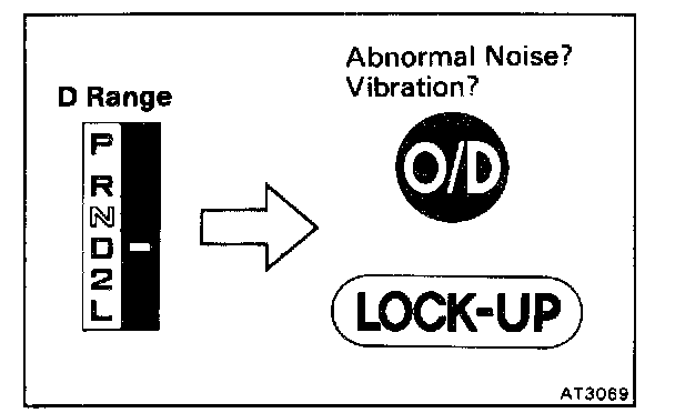 c. Run at the D range lock-up or O/D gear and check for abnormal noise and vibration.
