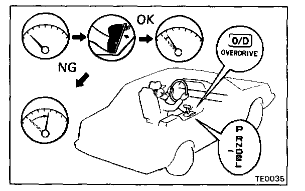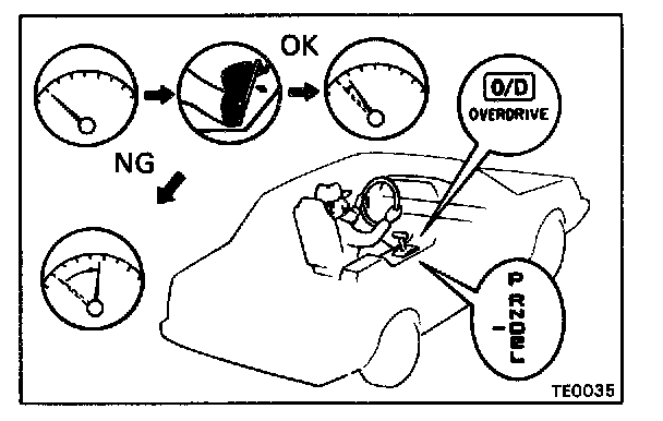 1. Drive in D range, O/D gear, at a steady speed (lock-up ON) of about 75 km/h (47 mph).