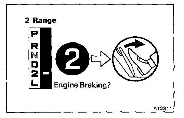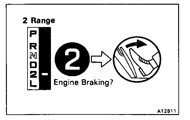 b. While running in the 2 range and 2nd gear, release the accelerator pedal and check the engine braking effect.