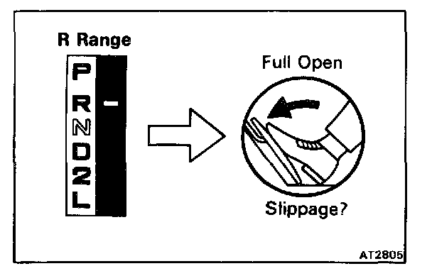 Shift into the R range and, while starting at full throttle, check for slipping.